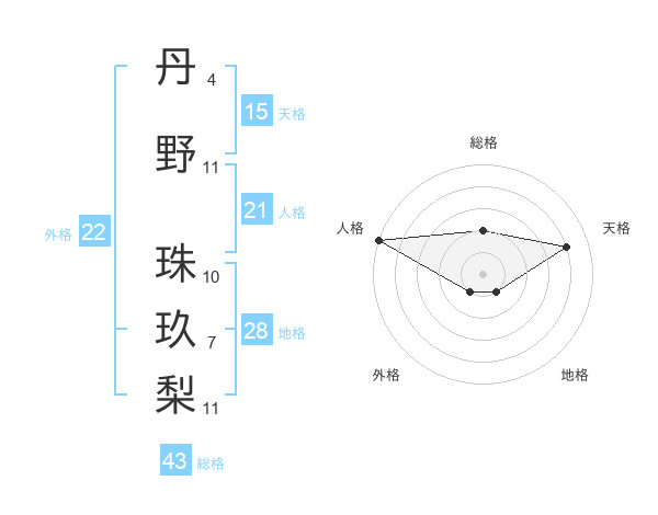 丹野 珠玖梨さんの外格は22画の1点!