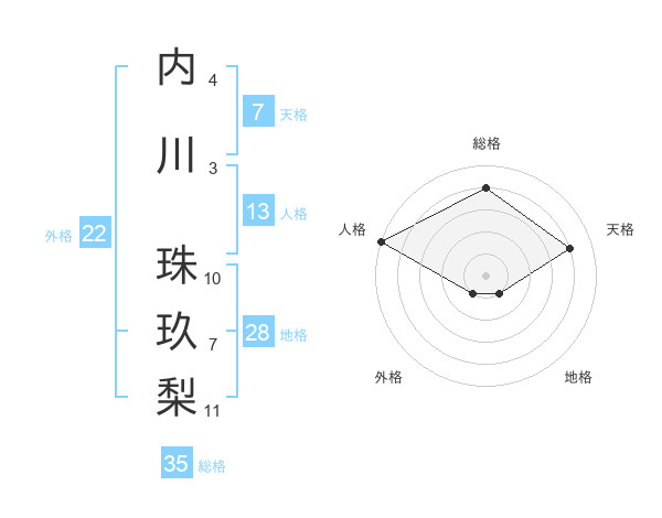 内川 珠玖梨さんの総格は35画の4点!