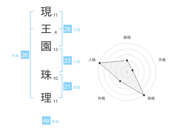 現王園 珠理さんを姓名の画数から五運を鑑定