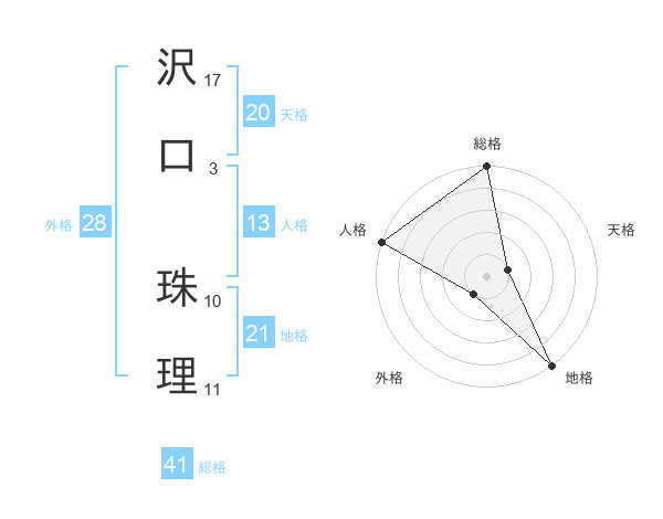 沢口 珠理さんを姓名の画数から五運を鑑定