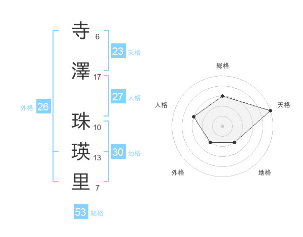 寺澤 珠瑛里さんの天格は23画の5点!