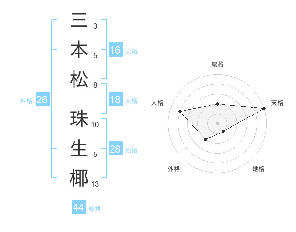 三本松 珠生椰さんを姓名の画数から五運を鑑定
