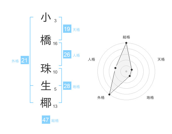 小橋 珠生椰さんを姓名の画数から五運を鑑定
