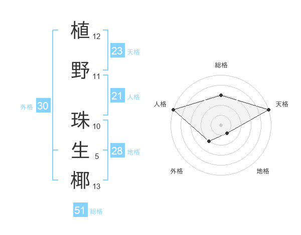 植野 珠生椰さんを姓名の画数から五運を鑑定