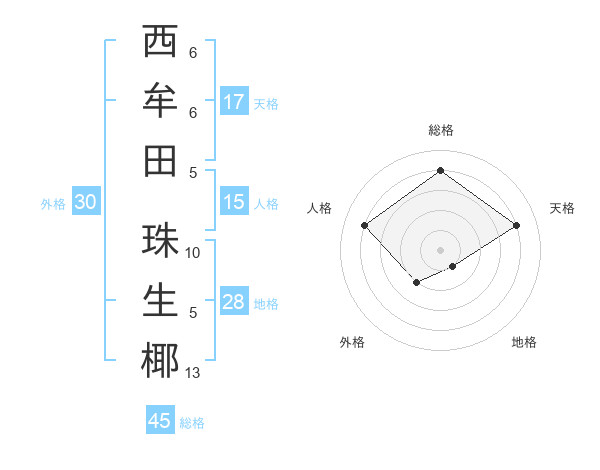 西牟田 珠生椰さんを姓名の画数から五運を鑑定