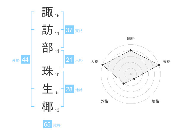 諏訪部 珠生椰さんの総格は65画の4点!