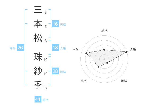 三本松 珠紗季さんの天格は16画の5点!
