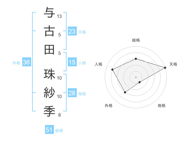 与古田 珠紗季さんを姓名の画数から五運を鑑定