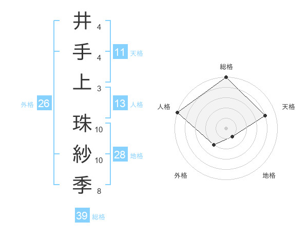 井手上 珠紗季さんを姓名の画数から五運を鑑定
