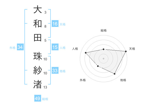 大和田 珠紗渚さんを姓名の画数から五運を鑑定