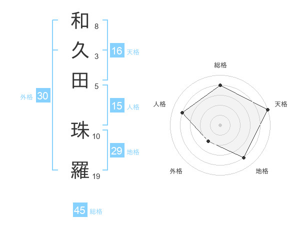 和久田 珠羅さんの天格は16画の5点!