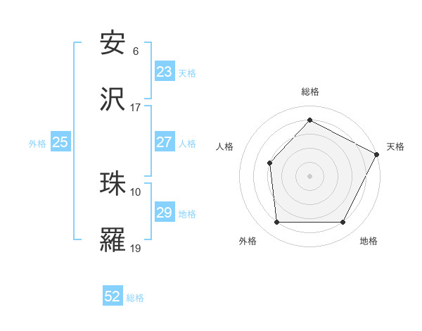 安沢 珠羅さんを姓名の画数から五運を鑑定