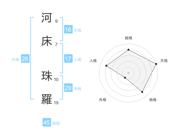 河床 珠羅さんの総格は45画の4点!
