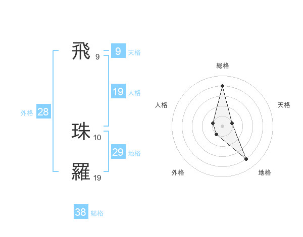 飛 珠羅さんの総格は38画の4点!