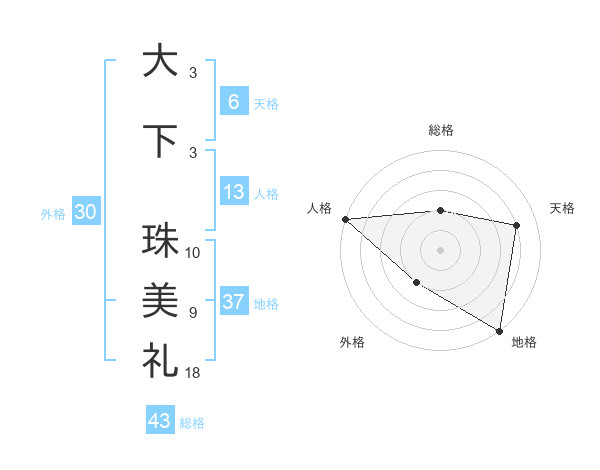 大下 珠美礼さんを姓名の画数から五運を鑑定