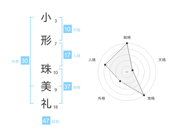 小形 珠美礼さんの総格は47画の5点!
