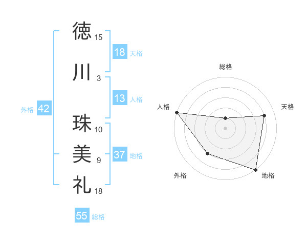徳川 珠美礼さんの総格は55画の1点