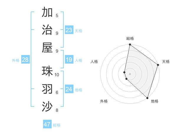 加治屋 珠羽沙さんの総格は47画の5点