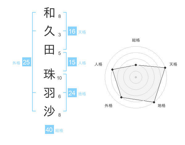 和久田 珠羽沙さんを姓名の画数から五運を鑑定