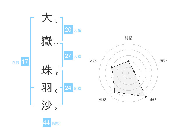 大嶽 珠羽沙さんを姓名の画数から五運を鑑定
