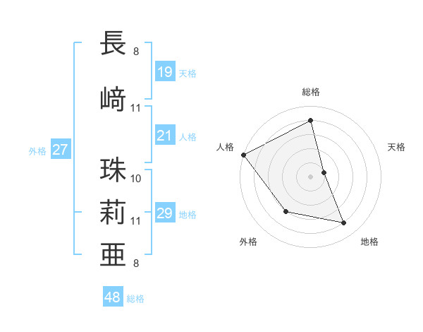 長﨑 珠莉亜さんを姓名の画数から五運を鑑定