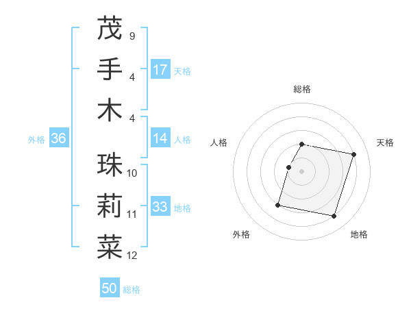 茂手木 珠莉菜さんを姓名の画数から五運を鑑定