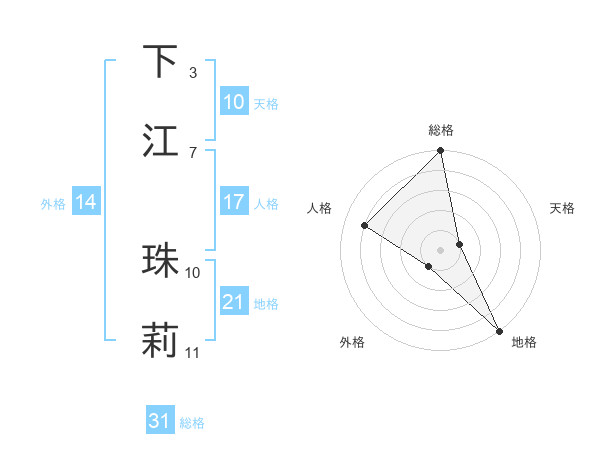 下江 珠莉さんを姓名の画数から五運を鑑定