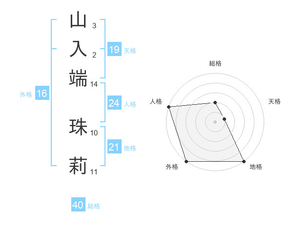山入端 珠莉さんの外格は16画の5点!