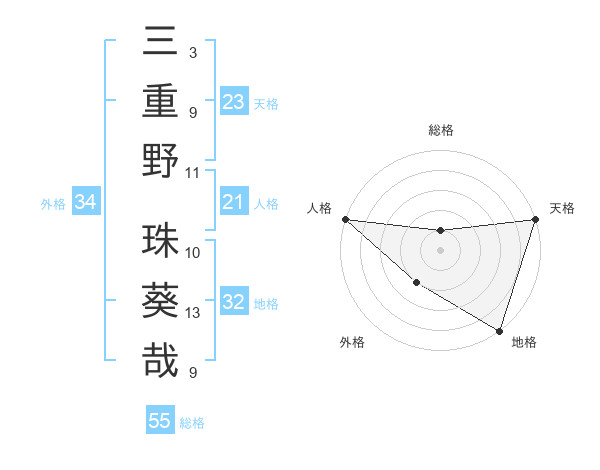 三重野 珠葵哉さんを姓名の画数から五運を鑑定