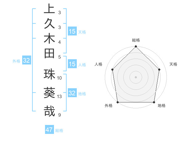 上久木田 珠葵哉さんを姓名の画数から五運を鑑定