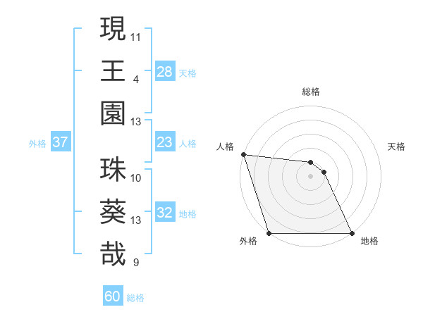 現王園 珠葵哉さんを姓名の画数から五運を鑑定
