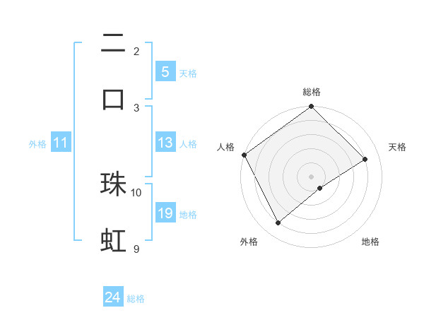 二口 珠虹さんの外格は11画の4点!