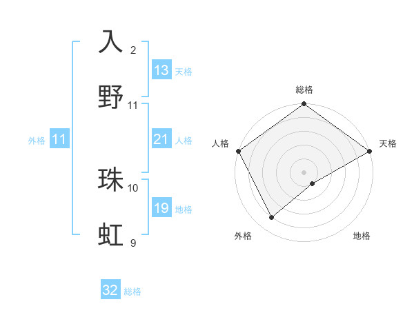 入野 珠虹さんを姓名の画数から五運を鑑定