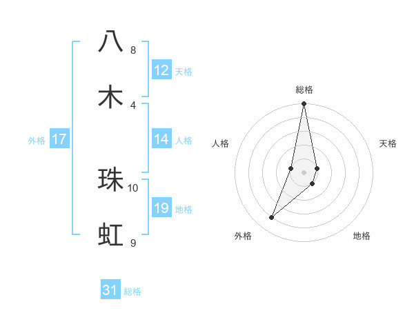 八木 珠虹さんを姓名の画数から五運を鑑定