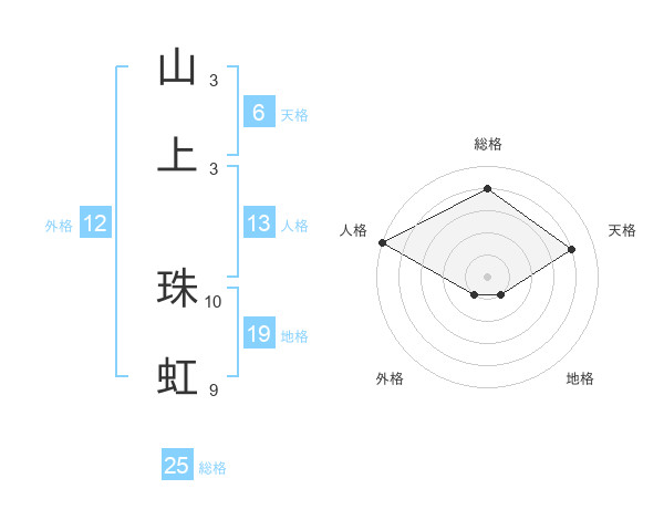 山上 珠虹さんの総格は25画の4点!