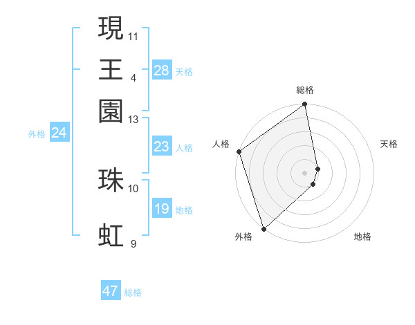 現王園 珠虹さんを姓名の画数から五運を鑑定