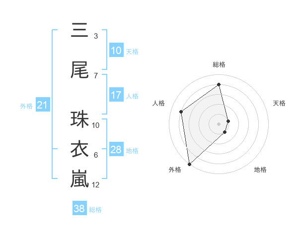 三尾 珠衣嵐さんを姓名の画数から五運を鑑定