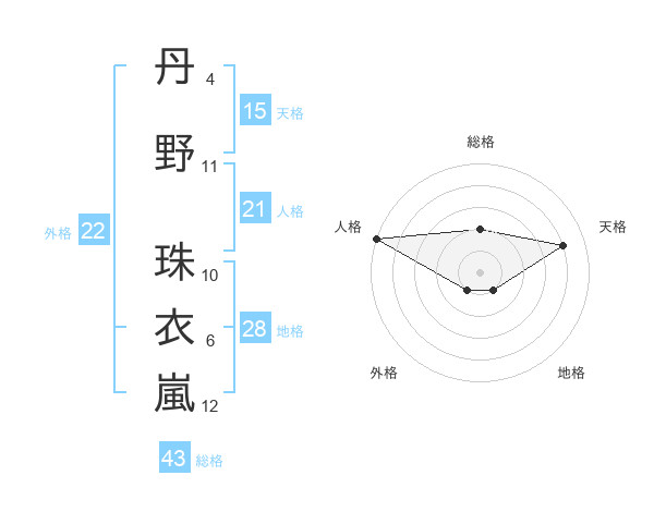 丹野 珠衣嵐さんを姓名の画数から五運を鑑定