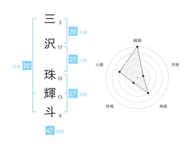 三沢 珠輝斗さんの総格は47画の5点