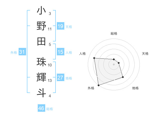小野田 珠輝斗さんの外格は31画の5点!