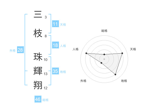 三枝 珠輝翔さんを姓名の画数から五運を鑑定