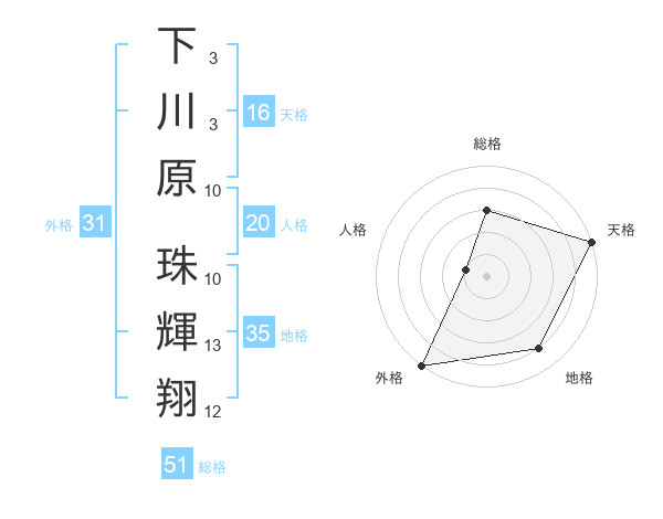 下川原 珠輝翔さんの外格は31画の5点!