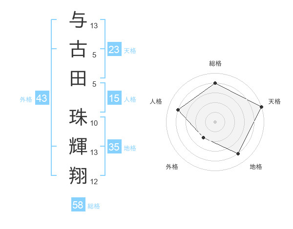 与古田 珠輝翔さんを姓名の画数から五運を鑑定