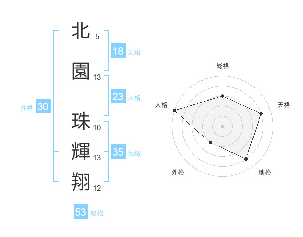北園 珠輝翔さんを姓名の画数から五運を鑑定