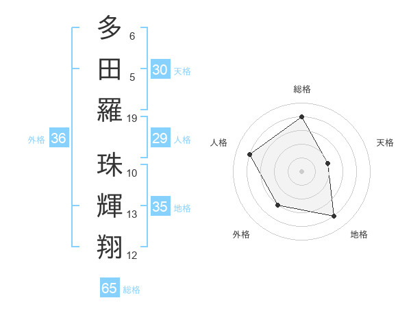 多田羅 珠輝翔さんを姓名の画数から五運を鑑定