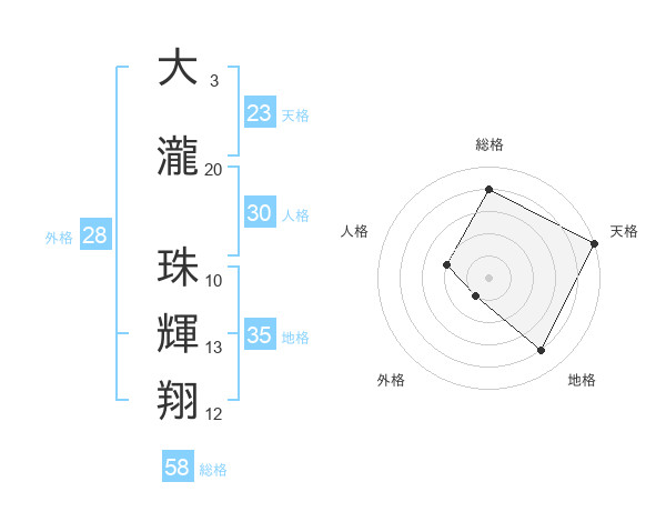 大瀧 珠輝翔さんを姓名の画数から五運を鑑定