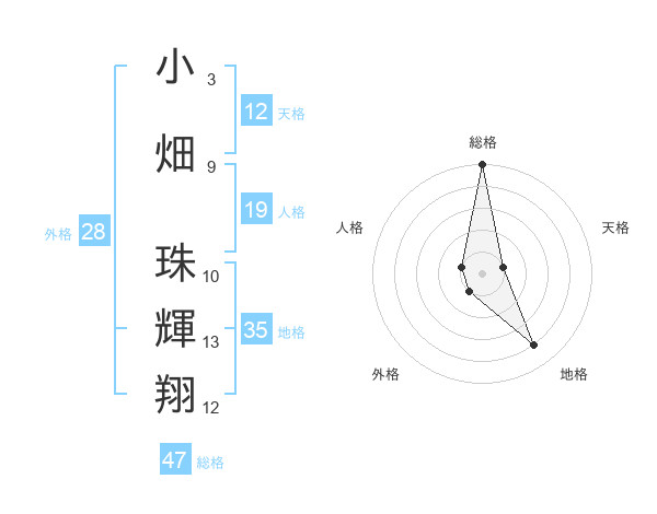小畑 珠輝翔さんの総格は47画の5点!