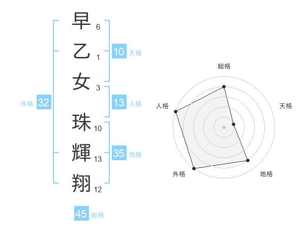 早乙女 珠輝翔さんを姓名の画数から五運を鑑定
