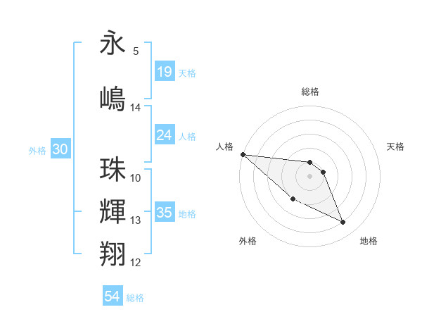 永嶋 珠輝翔さんを姓名の画数から五運を鑑定