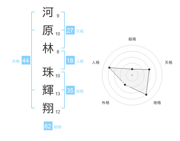 河原林 珠輝翔さんを姓名の画数から五運を鑑定